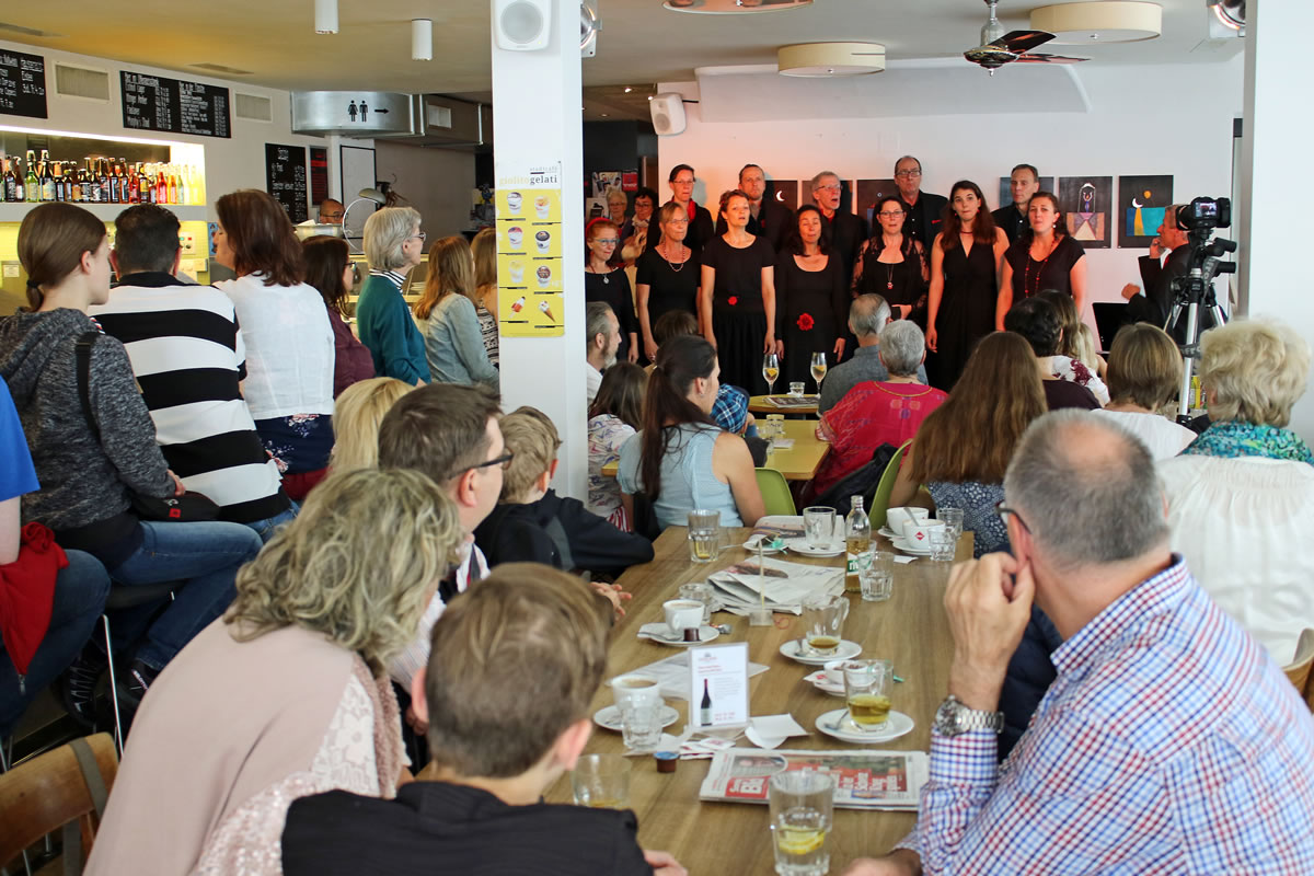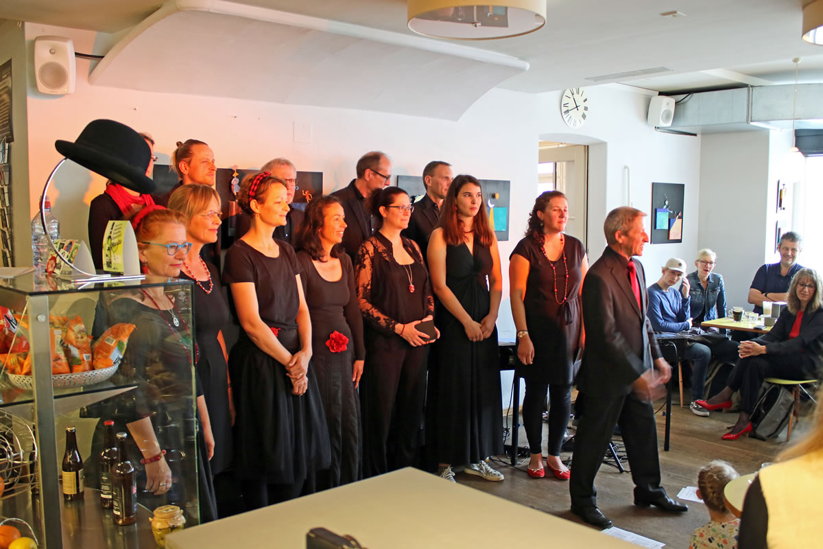 Ausserdem haben wir mit unseren beiden CDs musikalische Wegmarken gesetzt: ein akustischer Querschnitt durch unser Repertoire, unsere stilistische Vielfalt und unseren Ensembleklang.